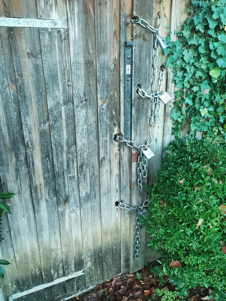 Au passage on remarque une chose curieuse, une grosse boule en verre, coiffée d’un manchon conique qui pend le long des barrières électriques. Mystère ?