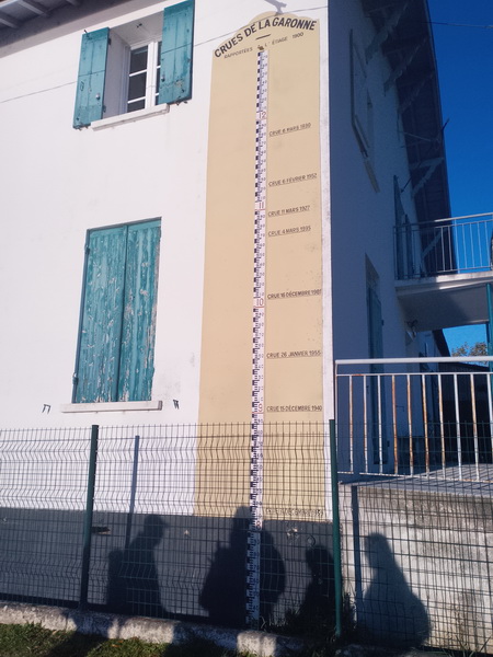 Nous partons longer les murailles de la cité jusqu’à la « porte de la mer », imposante tour carrée sous laquelle on peut voir une échelle des crues de la Garonne depuis les années 1900.