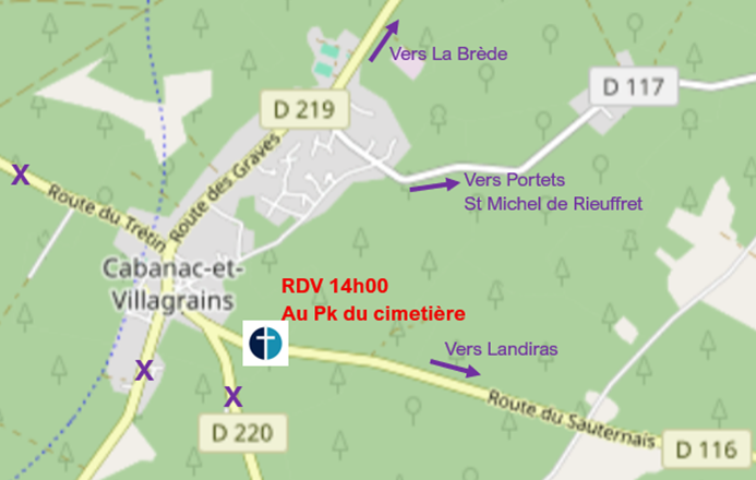 Le rendez vous est fixé à 8h45 au cimetière de Cabanac (voir plan joint).
