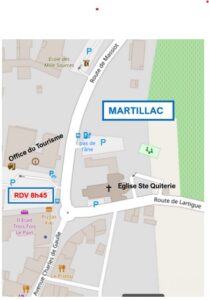 RdV à 8h45 au parking en face de l’église où se trouve également l’Office de Tourisme de Montesquieu. Voir plan ci-joint.