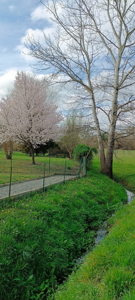On longe des bois jusqu’à « Jeanmot » sur la commune de Romagne. A gauche on rejoint la D 19E4. Une petite route descend vers la vallée du ruisseau de Vacher, affluent de l’Engranne.