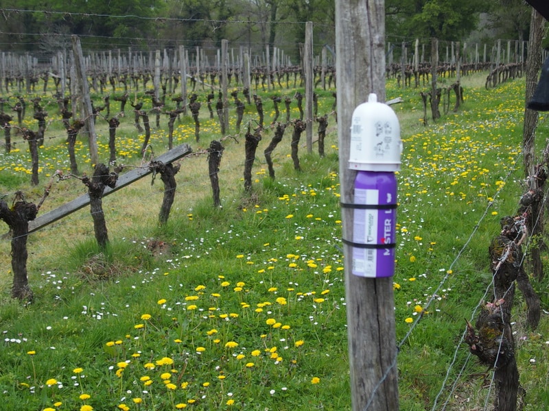 Nous laissons sur la gauche le petit hameau de Colinneau avant de passer devant le Château Turcaud et la maison d’hôtes de La Grave. Peu à peu les vignes cèdent la place à la forêt ; nous tournons à droite sur la route de Rambaud et après une longue descente nous la quittons pour prendre à droite un chemin de terre qui traverse la zone boisée et longe sur une centaine de mètres une palombière entièrement clôturée.