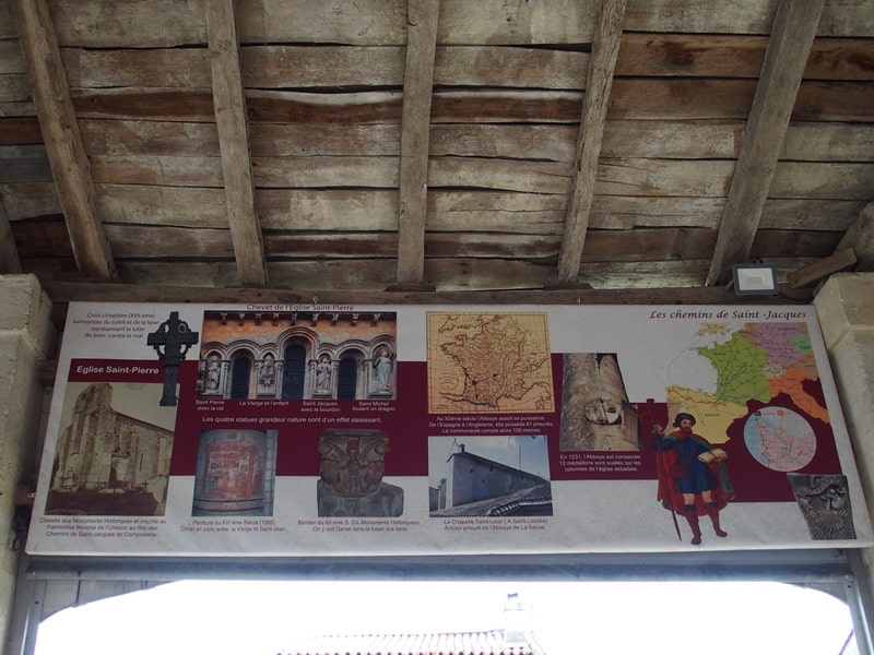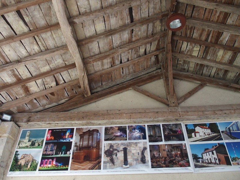 Nous passons le long de l’église Saint Pierre (XIème, XIIème et XIIIème siècles), descendons la rue éponyme, remontons vers la place Saint Jean pour découvrir la halle (XIXème) qui abrite des panneaux informatifs sur l’histoire du village.