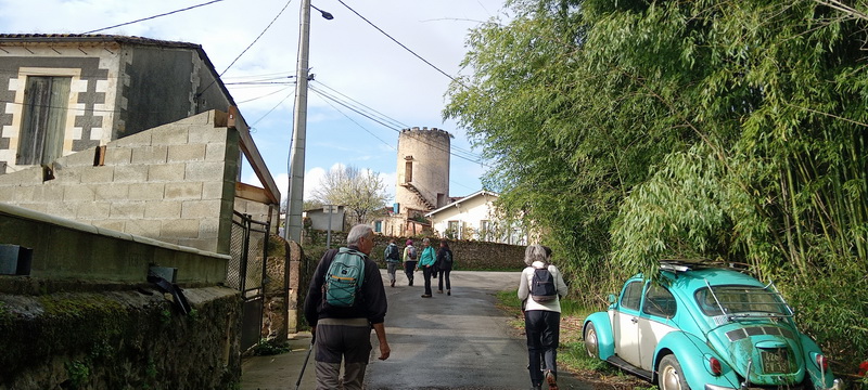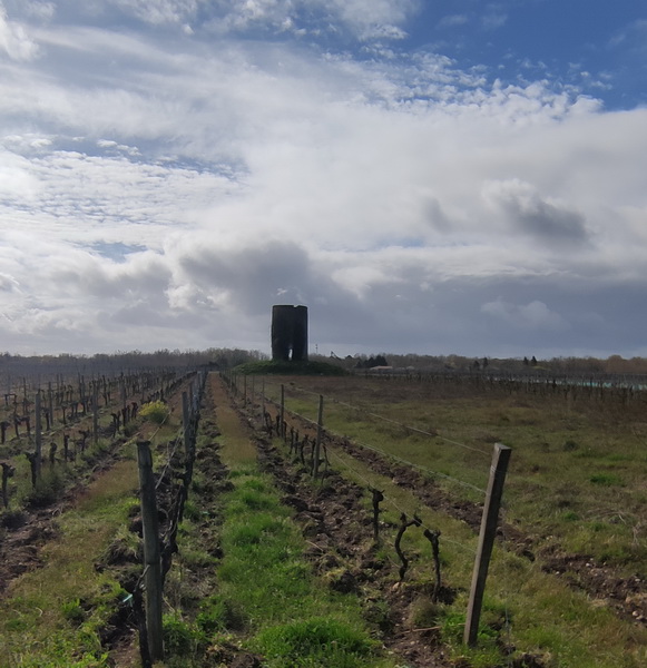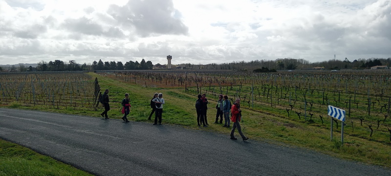 La route s’approche de deux tours (anciens moulins ou télégraphes ?) perchées sur des buttes. De là, la vue s’étend loin vers la rive droite et on aperçoit tous les coteaux que l’on connait bien, depuis Tabanac au nord-ouest jusqu’à Sainte croix du mont au Sud-est.