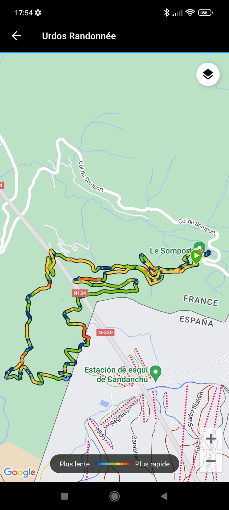 Nous repartons en passant au plus haut de notre balade, avec une vue sur les pistes de la station de skis de Candenchou.