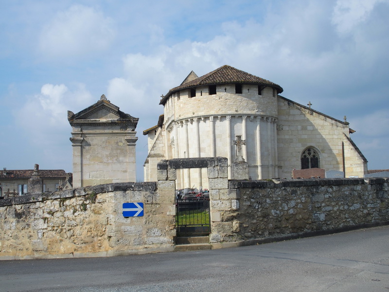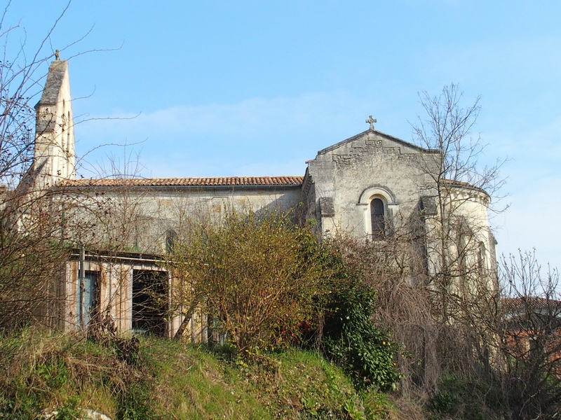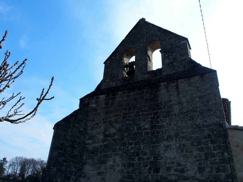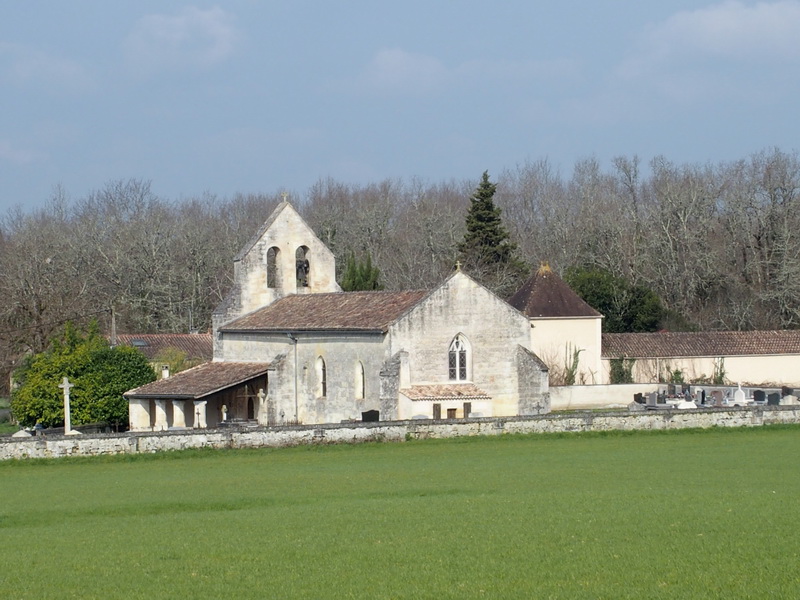 Nous traversons la route qui relie Espiet à Tizac-de-Curton, et descendons vers la petite église d’Espiet située curieusement à l’écart du village.