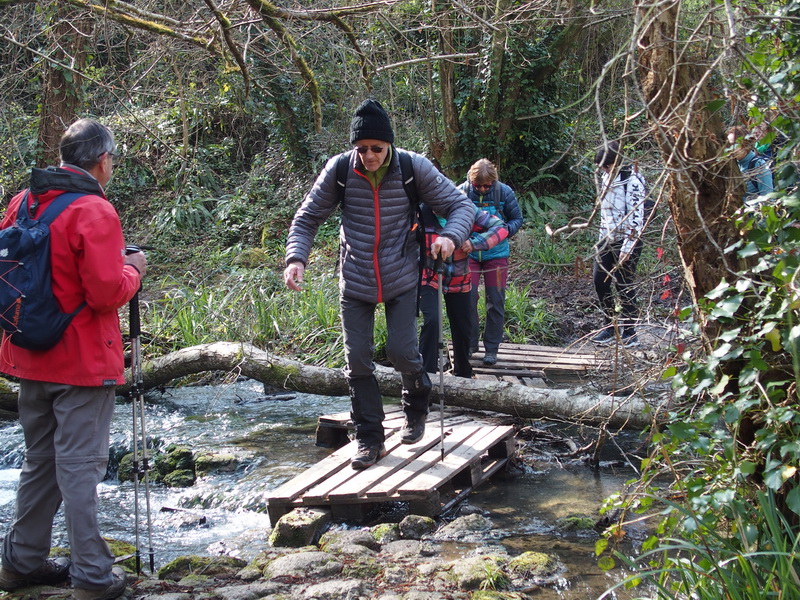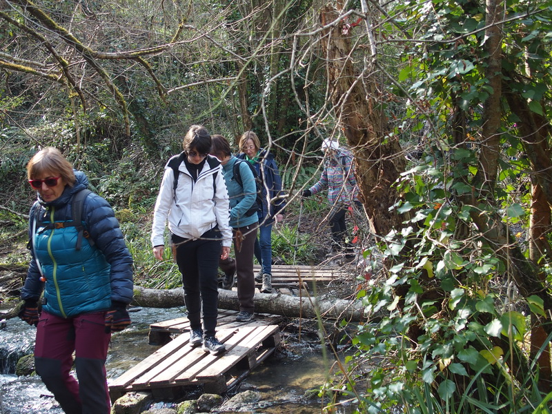 Après cette halte nous reprenons notre route et avant de traverser le ruisseau de Peyrat sur un pont de fortune constitué de palettes, nous admirons le Moulin Neuf, moulin fortifié remanié au XVème siècle qui appartenait à l’Abbaye de La Sauve-Majeure.