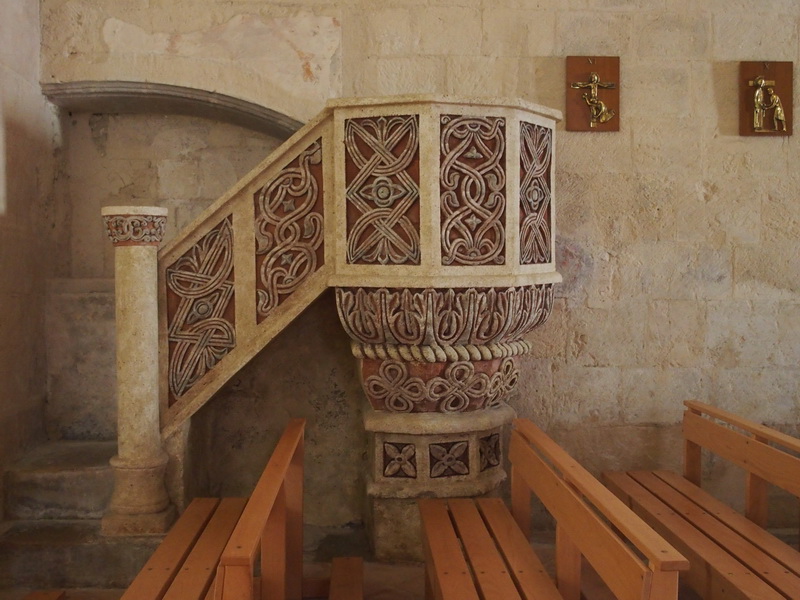 Un chemin de terre nous conduit vers les premières maisons du bourg de Saint-Quentin-de-Baron; l’église étant ouverte nous en profitons pour effectuer la visite de cet édifice du XIIème siècle, fortifié au XIVème et modifié au XVIème.